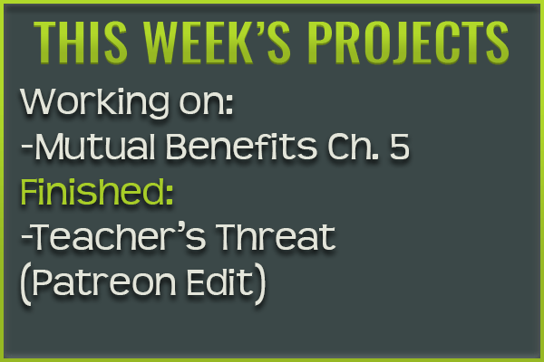 Speaking of, I’ve been very lucky lately in the word getting out about Mutual Benefits and people flocking not only to my stories on such sites as Literotica and StoriesOnline, but also my Patreon. Over a period of two months, my financial support doubled and then some. If you’re a patron of my work, sincerely, thank you. Your generous support is how I make my rent and afford to eat.